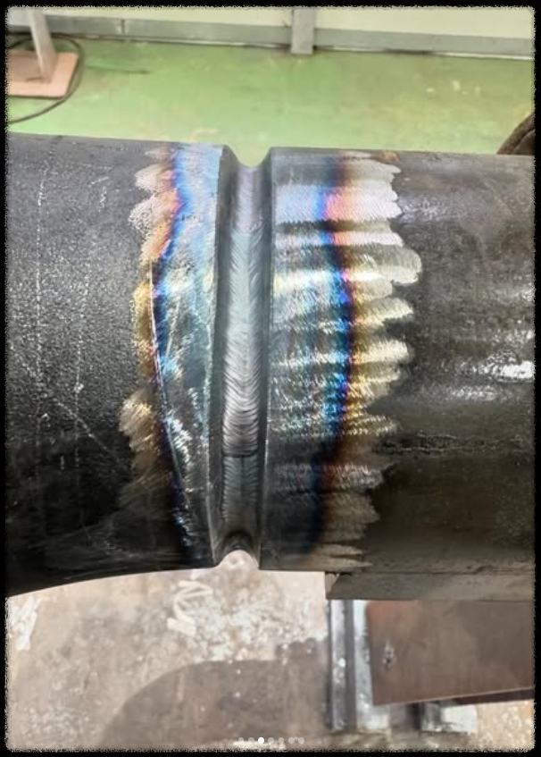 1차 용접 빽비드를 내기 위한 용접을 실시한 모습입니다.