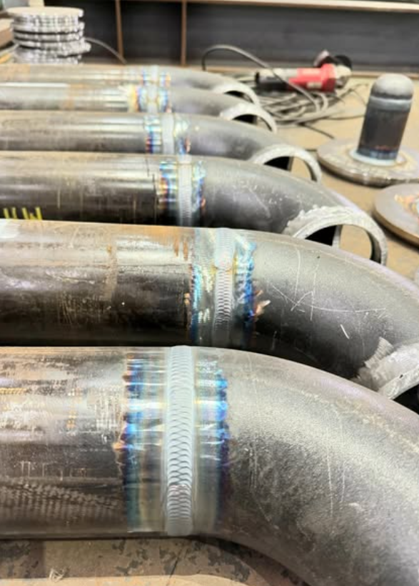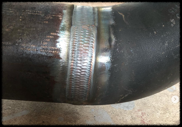 다음은 얼마 전 산업 보일러 수관 설비 작업할 때 티그 용접한 100A 스케줄 40 탄소강관입니다.