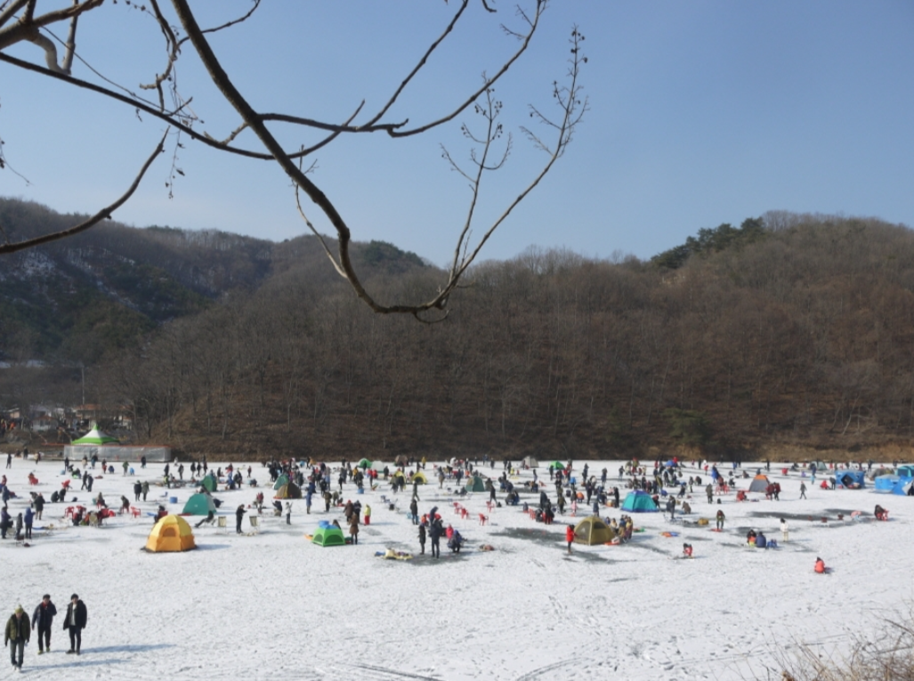 겨울철 대표적인 체험 축제인 양평 빙어축제에서는 얼음 위에서 빙어 낚시를 즐길 수 있습니다.